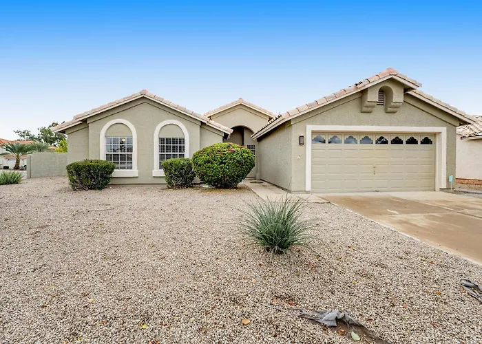 Nestled 2.8 miles from Peoria Stadium, the 2-bedroom Warm Welcomes On Wahalla Lane Glendale villa features a private swimming pool along with a patio to help guests unwind. Boasting access to a patio, this 2-bathroom villa invites guests to visit Peoria Sports Complex Stadium, located about 10 minutes' drive away.